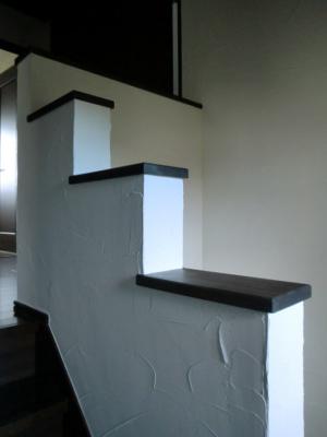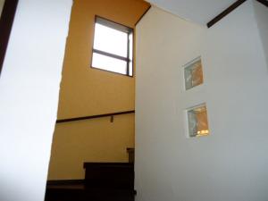 階段・トイレの壁には塗り壁を施し、アクセントにガラスブロックを入れてあります