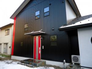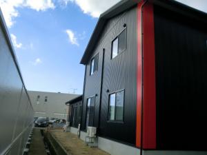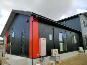 外観は玄関ドアと合わせてコーナー部には赤をアクセントにしております