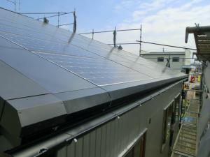 屋根と一体となった太陽光なので、すっきりして意匠性にも優れている。