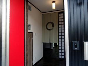 外観は玄関ドアと合わせてコーナー部には赤をアクセントにしております